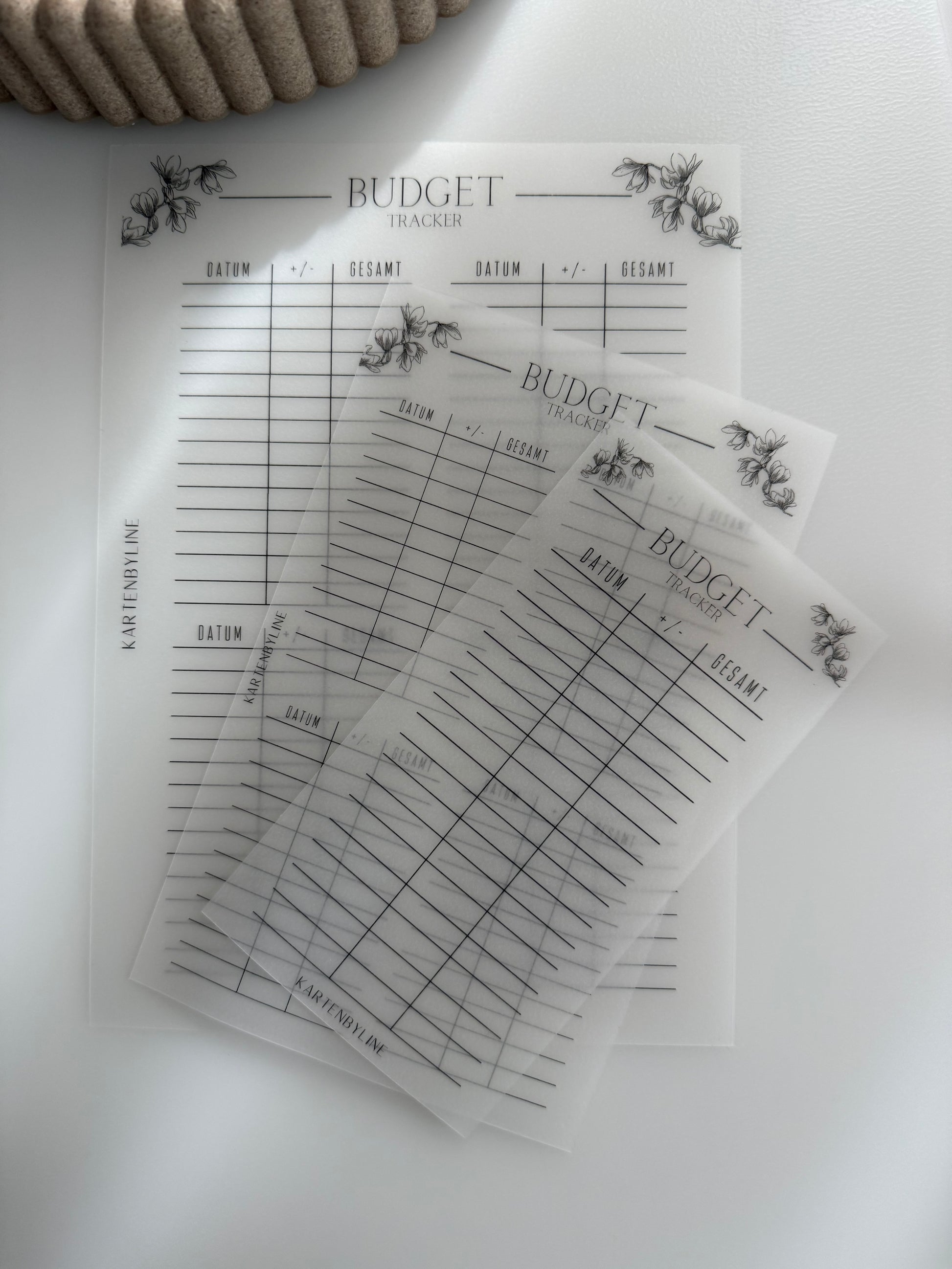 Du brauchst Budget Tracker? Da haben wir die perfekten Tracker für deine Finanzen. Passend für A6 oder A5 Binder.
