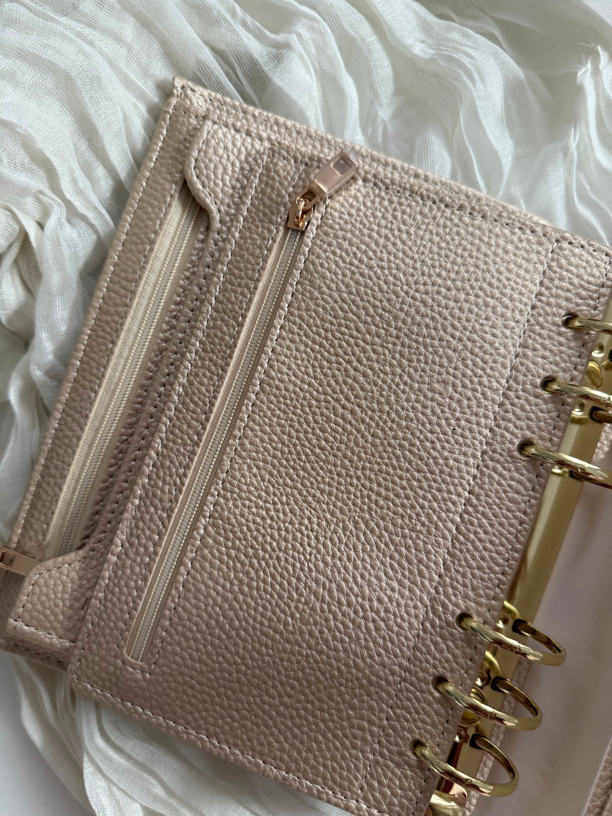 Unser Deluxe Binder ist der ideale Begleiter für alle, die Planung und Organisation lieben. Mit seinen hochwertigen, goldenen 3cm-Ringen bietet er genügend Platz für Umschläge, Planer-Seiten und Zubehör. Das enthaltene Fly Leaf mit Reißverschluss sorgt dafür, dass wichtige Kleinteile, Sticker oder Belege sicher verstaut bleiben.