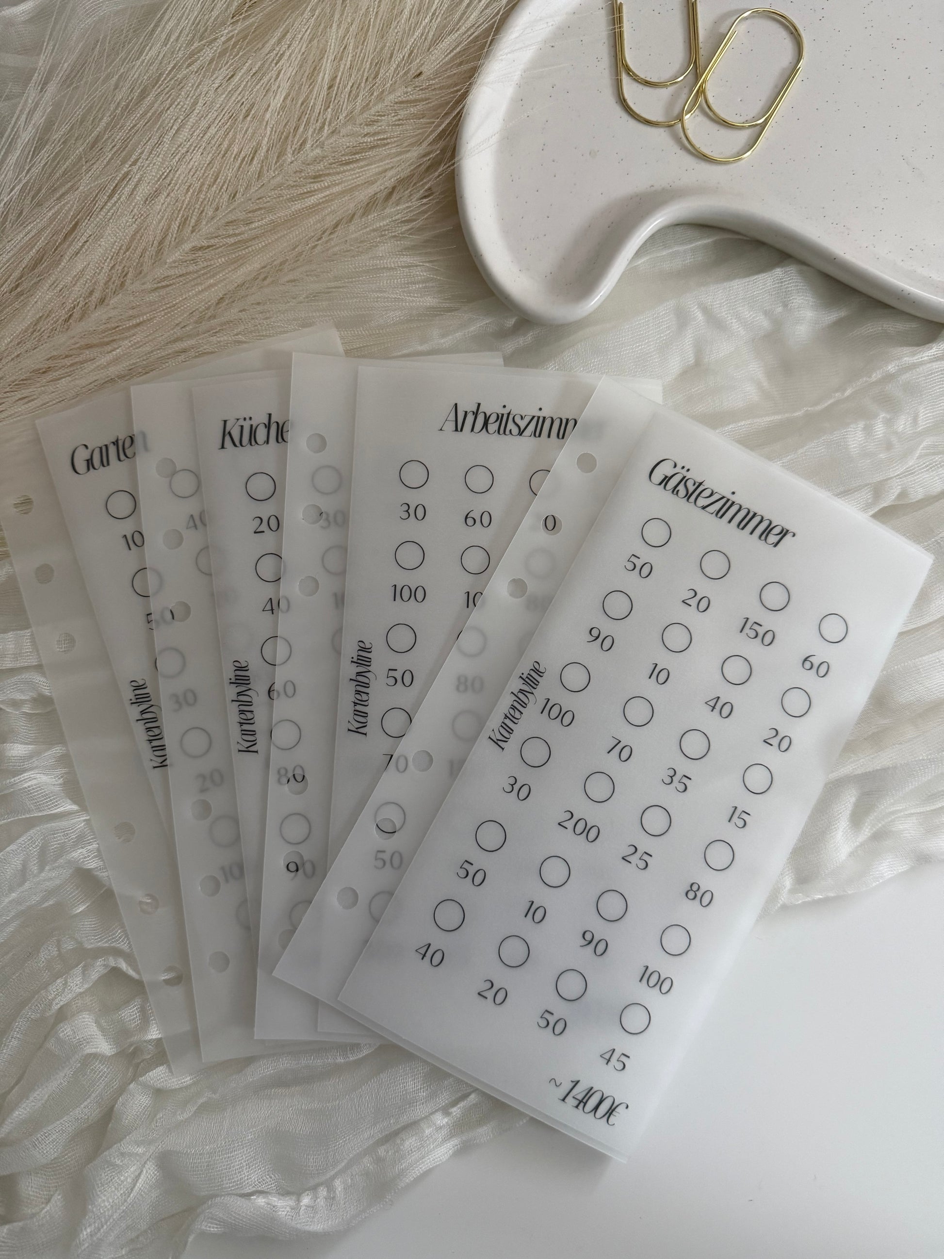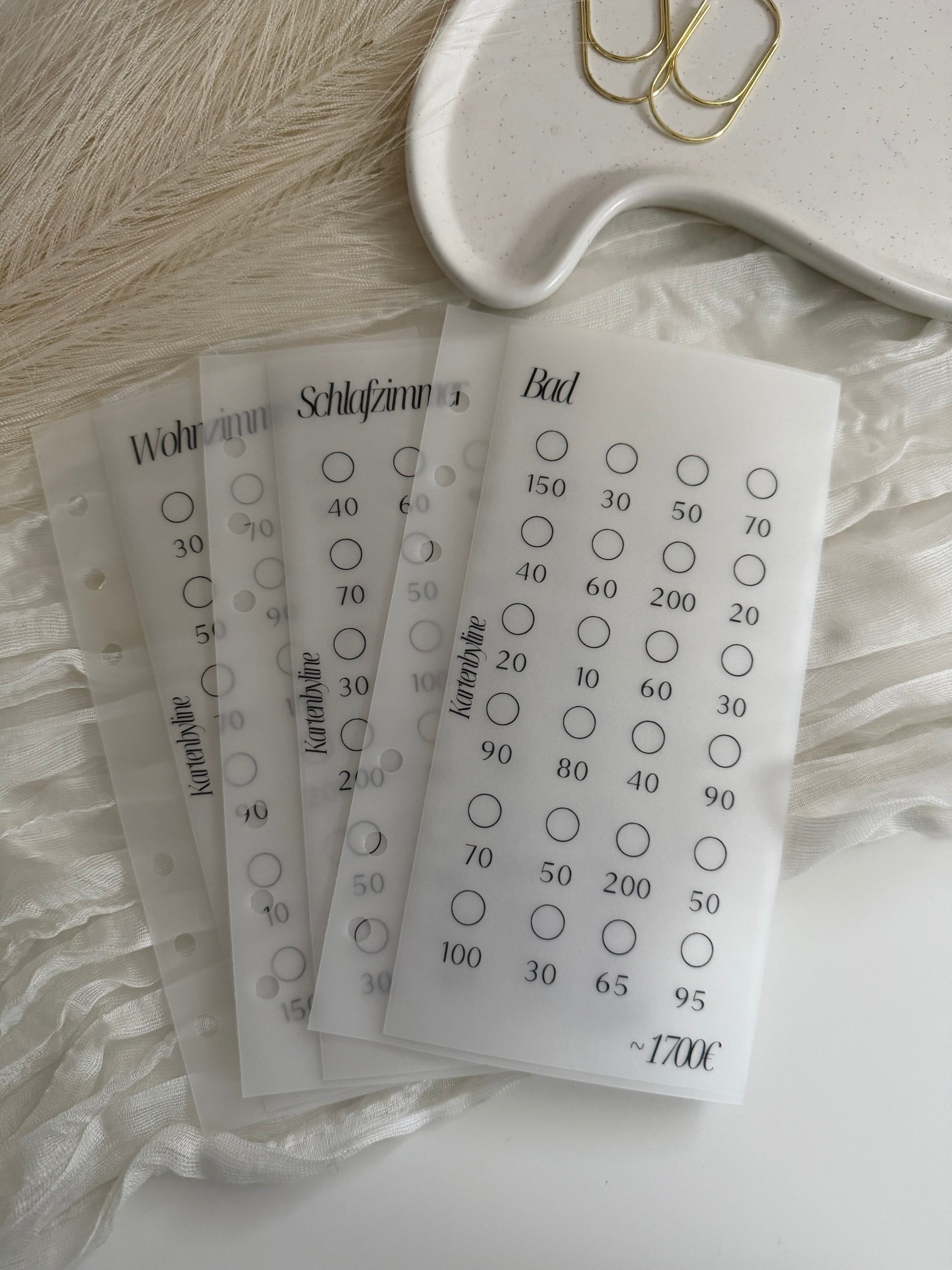 Lieferumfang 7 Geldumschlagchallenges und ein Deckblatt